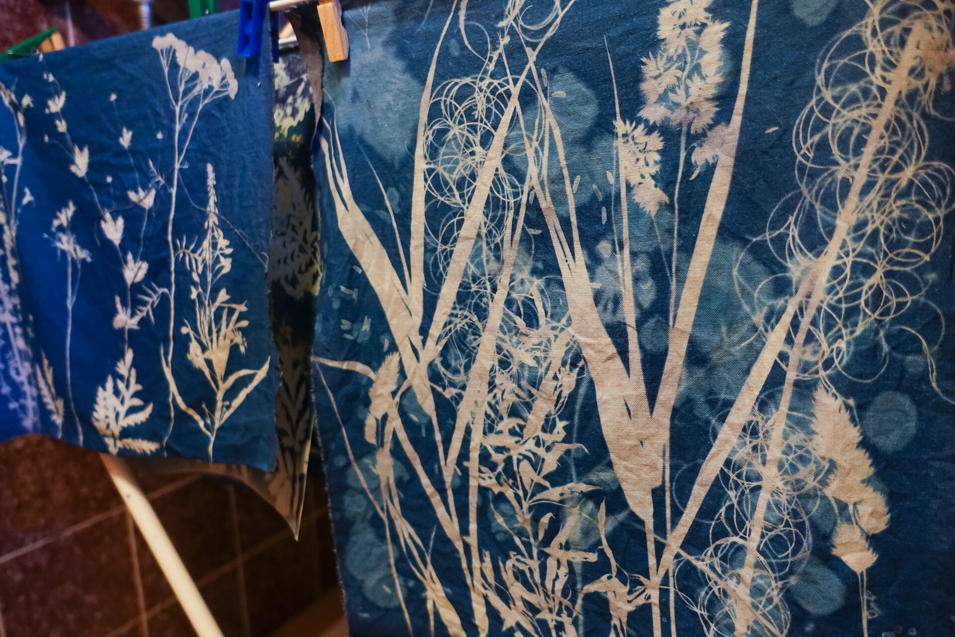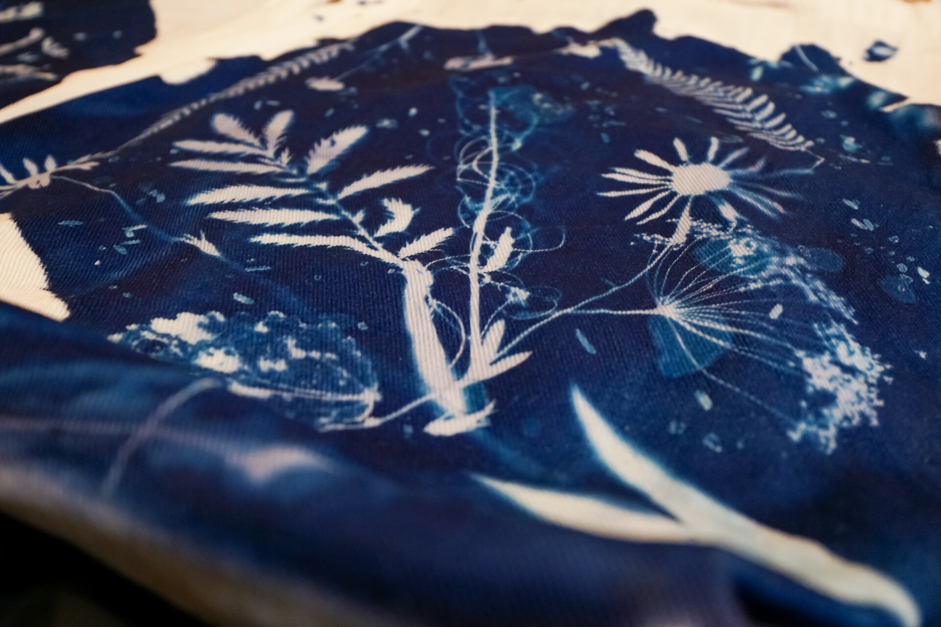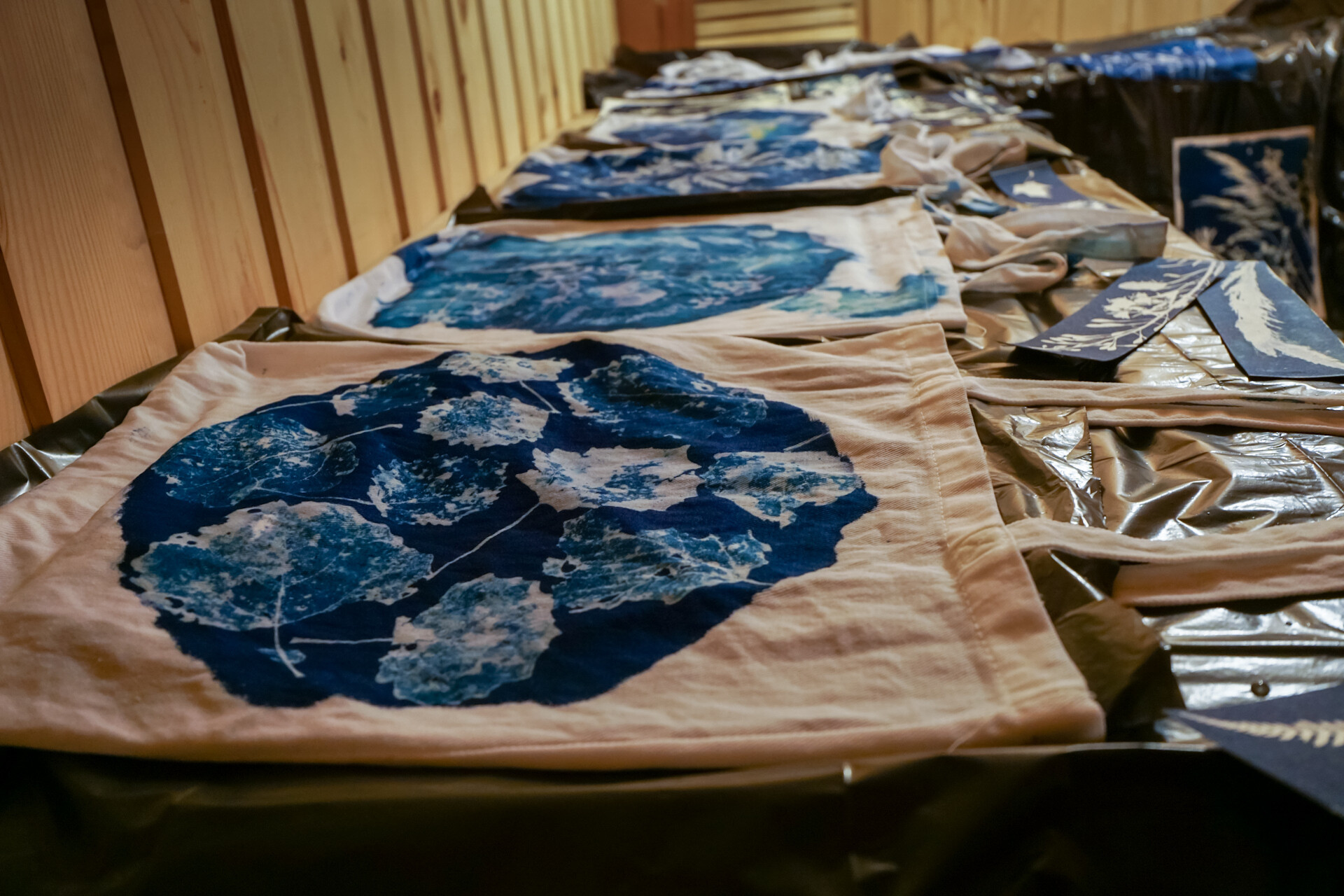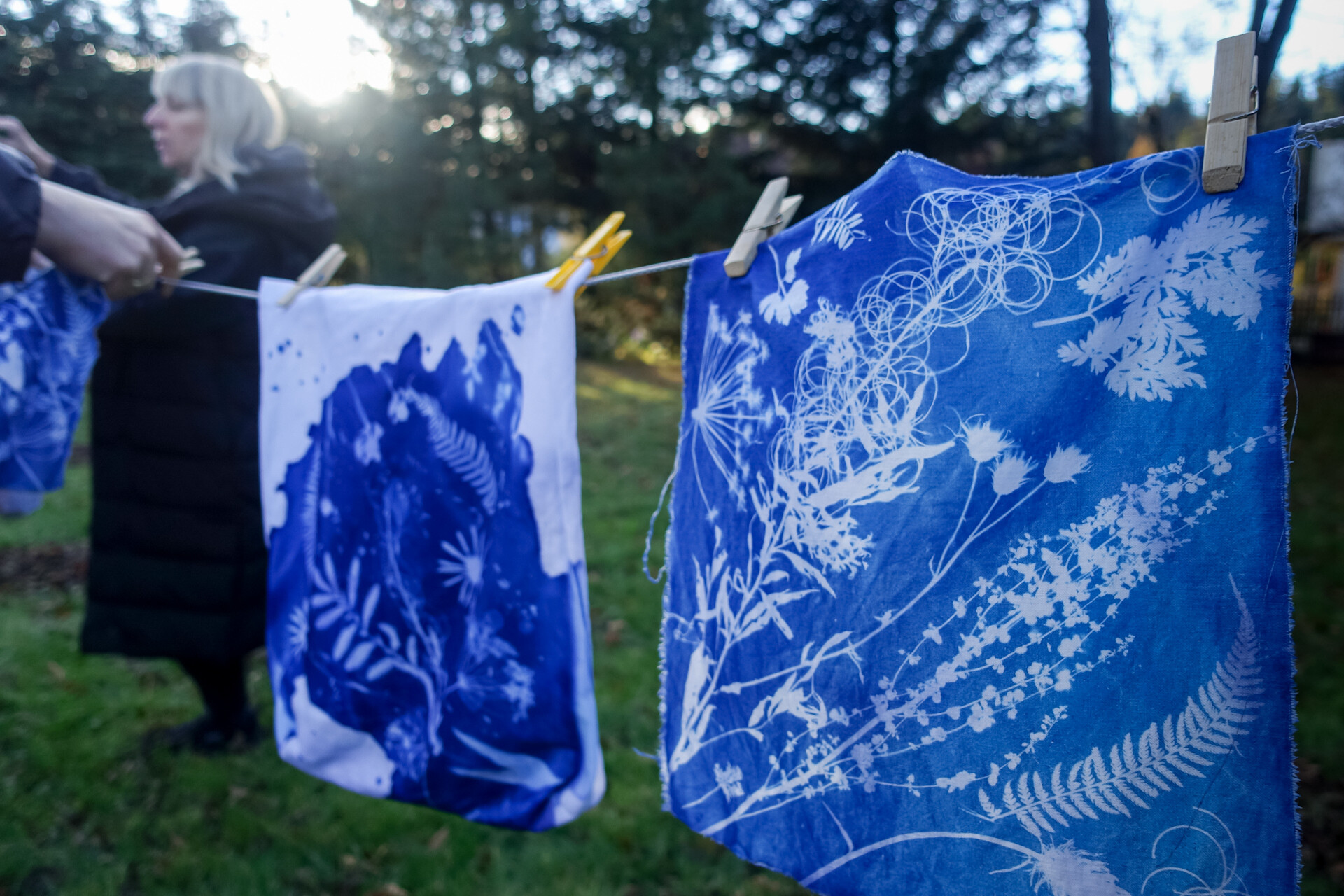 To była prawdziwa podróż w głąb procesu - od chemii, przez eksperyment, po artystyczny wyraz. Każda z uczestniczek mogła doświadczyć, jak delikatne niuanse w naświetlaniu, ilości emulsji czy rodzaju papieru wpływają na ostateczny efekt. Pracowałyśmy zarówno na papierze, jak i na tkaninach, uzyskując efekty odporne na spieranie, które zachwycały głębią błękitów i subtelnością botanicznych odbitek.