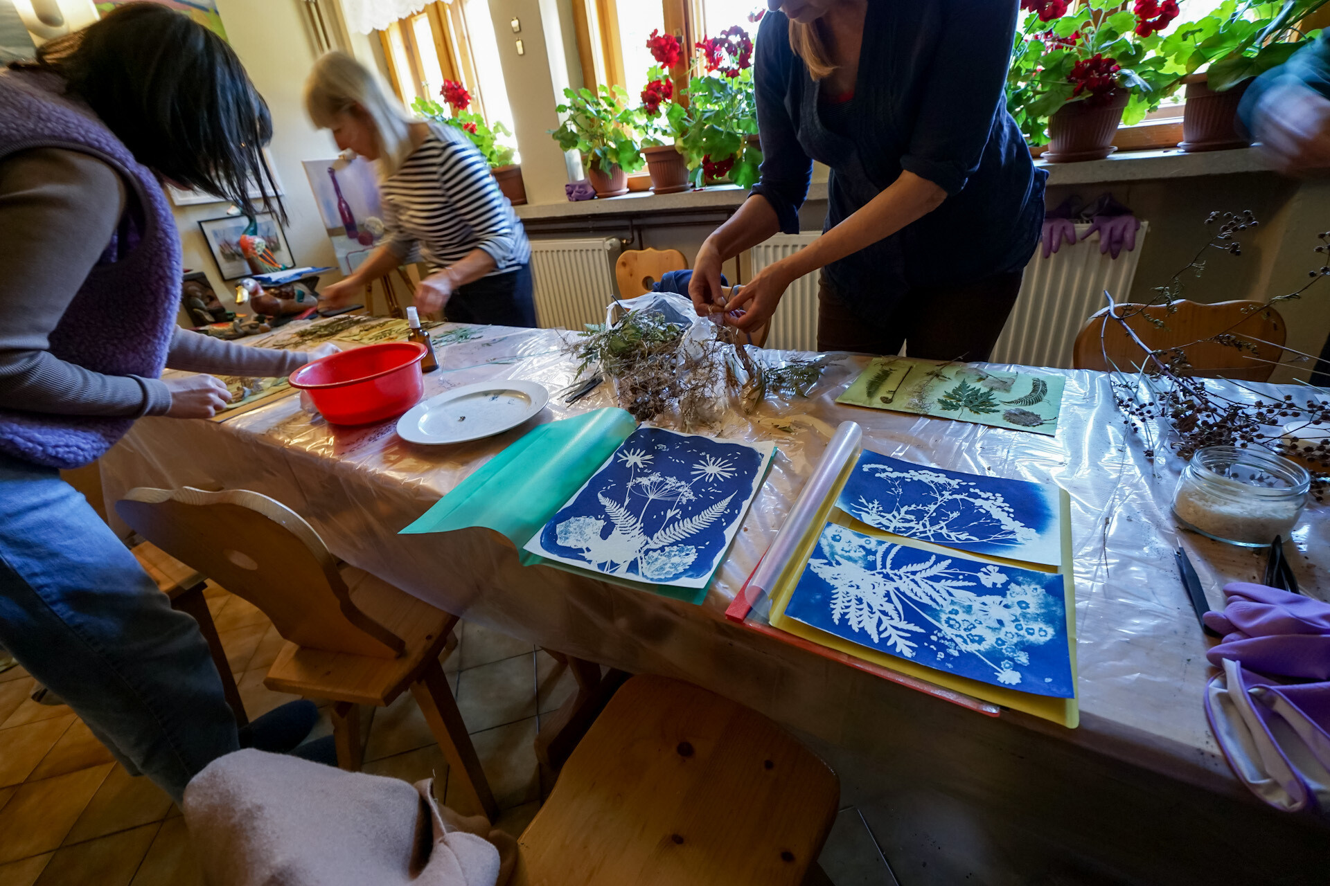 Różne odcienie błękitu, połączone z zachwytem nad światem roślin, sprawiły, że w miniony weekend w sercu Podhala spotkałam się z dziewięcioma wspaniałymi Kobietami, by wspólnie zgłębiać tajniki cyjanotypii botanicznej.