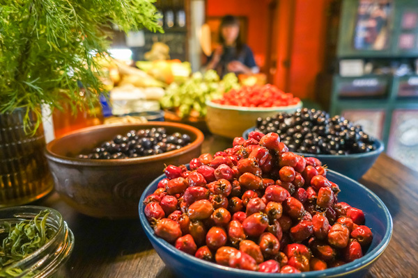 Na naszym stole i w naszych dłoniach znalazły się: owoce tarniny, głogu, dzikiej róży, aronii, jarzębiny, a także zioła i rośliny o silnym aromacie i działaniu -krwawnik, wrotycz, bylica, oraz iglaki: świerk i jałowiec. Każda z tych roślin ma swoją historię - w kuchni, w medycynie ludowej, w kulturze. Każda też ma swój smak - czasem dziki i ostry, czasem głęboki i ziemisty, czasem lekki, kwaskowaty, niemal musujący. Uczyłyśmy się słuchać tych smaków i szukać dla nich odpowiednich partnerów.