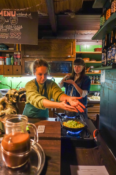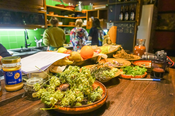 Spotkałyśmy się w przestrzeni WiedźMak – vegetarian magic, gdzie wszystko sprzyja temu, by zwolnić i wejść głębiej w kontakt z naturą i sobą. Nasze warsztaty rozpoczęły się nie od garnków i patelni, ale od rozmowy. Omawiałyśmy rośliny, które tego dnia miały zagościć w naszej kuchni - zarówno od strony zielarskiej, jak i praktycznej: kiedy zbierać, jak suszyć, które części wykorzystywać i jakie mają właściwości.